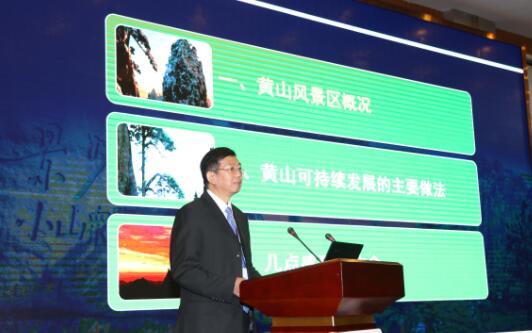 黃山市委常委、黃山風景區黨工委書記、管委會副主任吳文達作題為《黃山名錄遺產地可持續發展探索與實踐》報告 蔡季安 攝