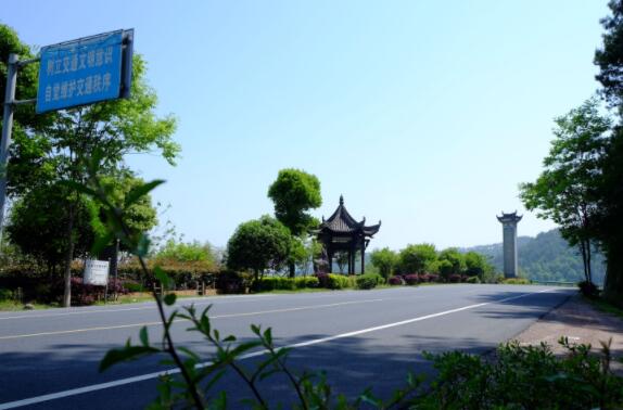 省道324線三陽鎮昱嶺關段,充分考慮了與周邊環境的和諧之美,堅持“連點成線、連線成片”,“四季常綠、色彩豐富”的原則,採取“喬木、灌木、花草”相結合的層次佈局及“線型”綠化與“景點式”美化的空間互動模式,從高到低依次栽植黃山欒樹、桂花、紅葉石楠等名貴綠化苗木。周邊還修建了一座徽派古典風格的八角亭,設立了景觀石,風景如畫,令人留連。