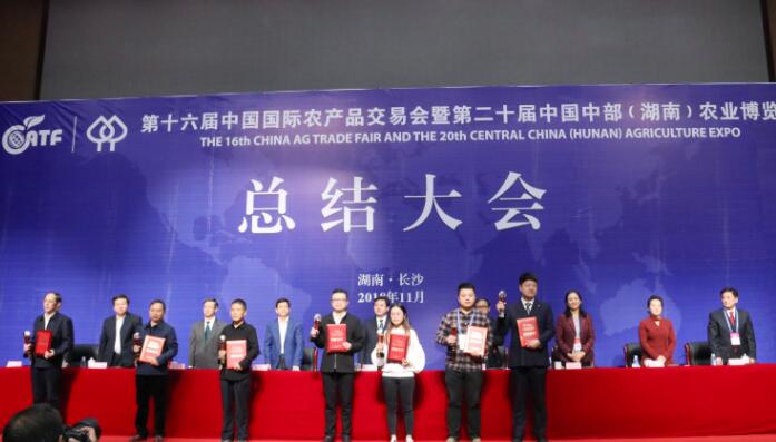 【香港商報網訊】為期5天的第十六屆中國國際農產品交易會暨第二十屆中國中部(湖南)農業博覽會於11月5日在長沙順利閉幕。據統計,展會期間到會採購商和專業觀眾5萬多人次,其中全球重點採購商40家,觀展觀眾超過40萬人次;國際農交會交易額416億元,中部農博會交易額266億元;評選發佈了農交會參展產品金獎299個、農博會袁隆平特別獎7個、農博會參展產品金獎53個。