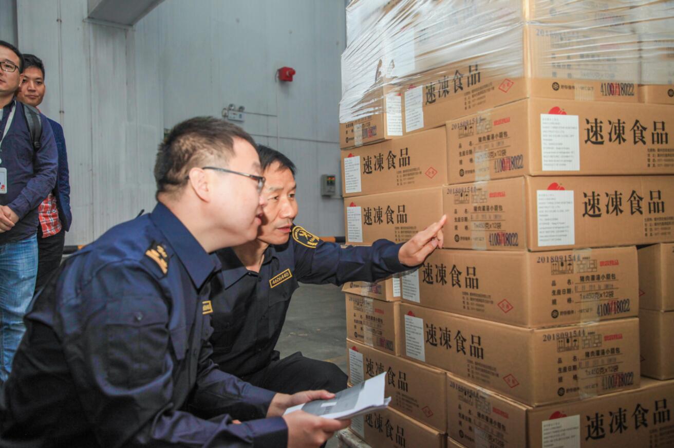 鄭州海關工作人員正在為速凍食品做通關檢驗