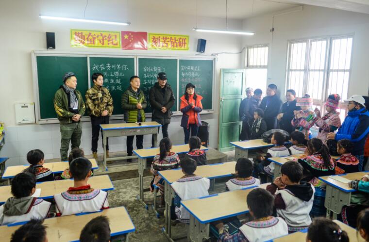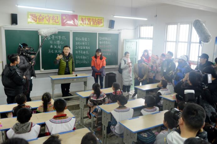 隨后,一眾音樂人來到了大南山小學五年級一班。在這里,孩子們唱著《我在貴州等你》歡迎老師們的到來。知名音樂人張超和玉鐲兒帶領孩子們再唱了一遍,那銀鈴般的童音,帶著對家鄉的熱愛,久久回蕩在校園上空。其他三位老師分別為孩子們演唱了歌曲,歌聲悠揚動聽,孩子們沉迷在歌聲中久久不能自拔。