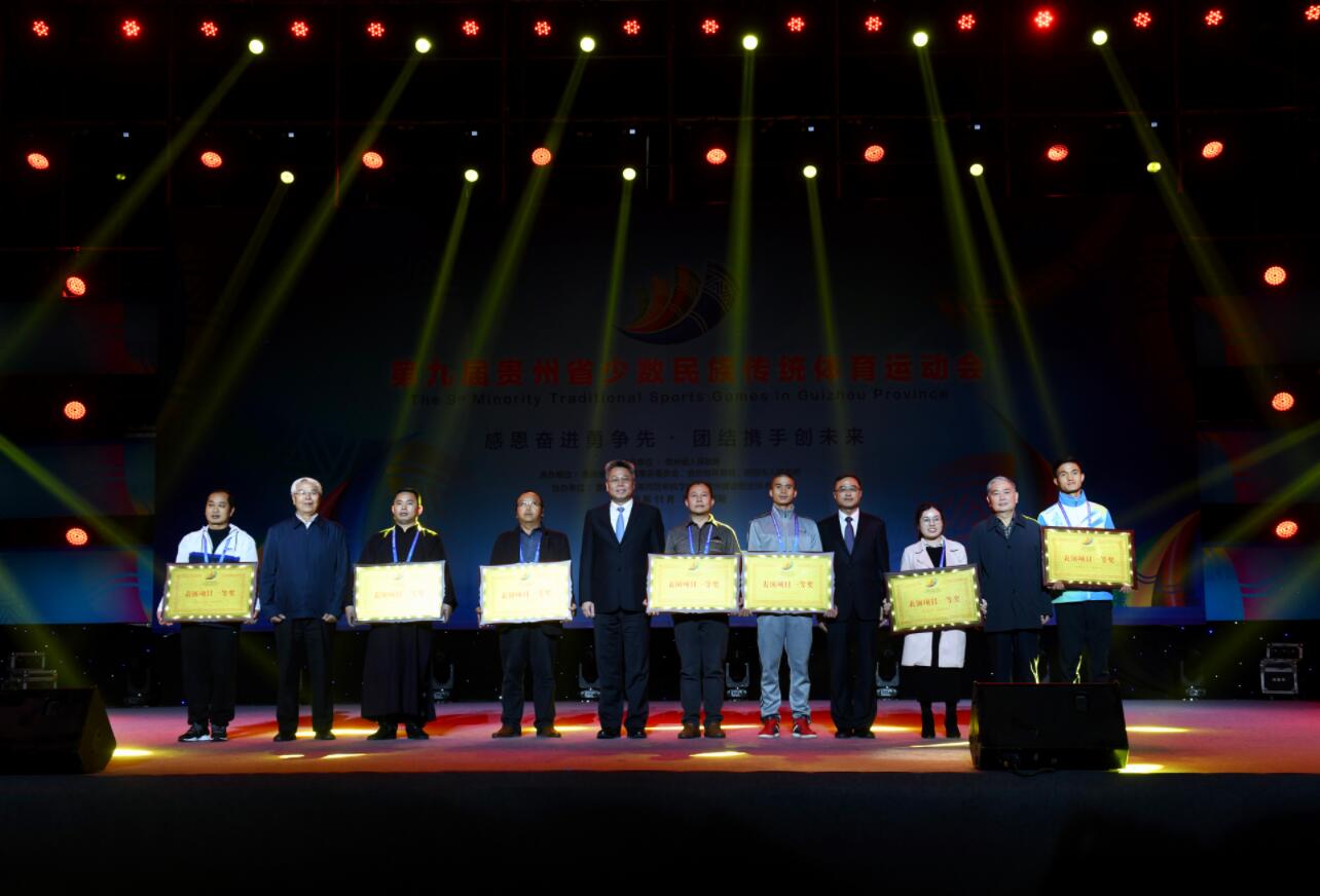 【香港商報網訊】記者黃慶松報導:11日,第九屆貴州省少數民族傳統體育運動會閉幕式在貴州省體育館舉行。閉幕式上,進行了各具特色的民族節目及優秀表演項目匯報演出,並舉行優秀組織獎、體育道德風尚獎和表演項目一等獎、二等獎、三等獎的頒獎儀式。
