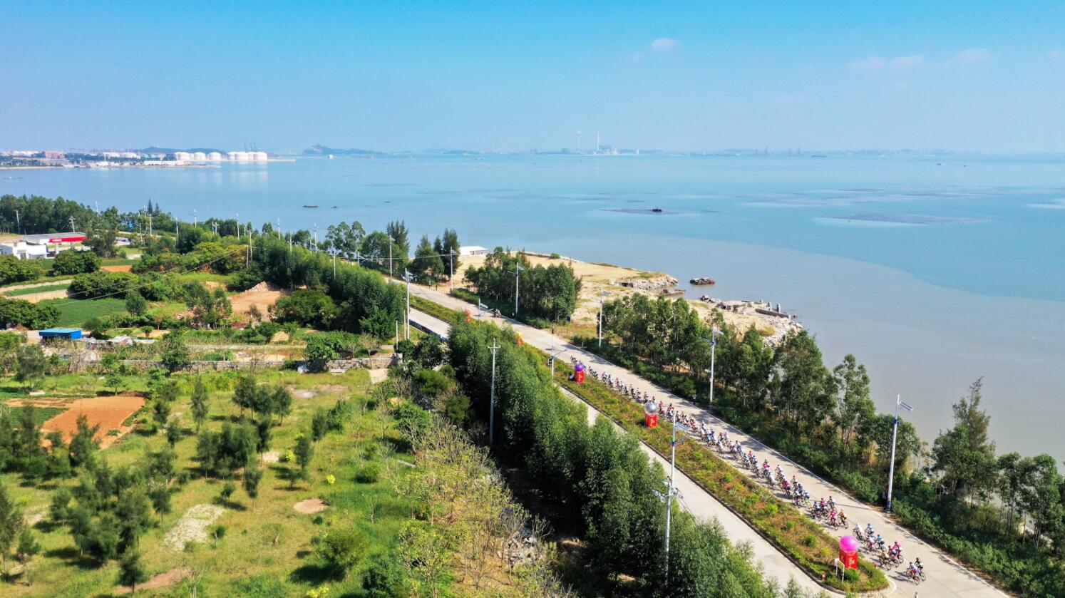 11日是2018環灣賽的第三天,第三賽段圍繞主題“海”展開,以泉港區後龍鎮後龍村為起終點作繞圈賽,線路總長度約81.4公里,40.7公里與60.9公里處設有兩個途中衝刺點。一望無際的海岸線作為賽道,海天一色,波光粼粼,車手們騎行在海灣公路,仿佛在碧波上游戈、在藍天裡遨遊,如同穿越明清海絲土坑的繁華,感受著閩南濱海漁鄉的盛情。作為收官賽段,最後一個賽段的道路平坦,沒有起伏,難度不大。