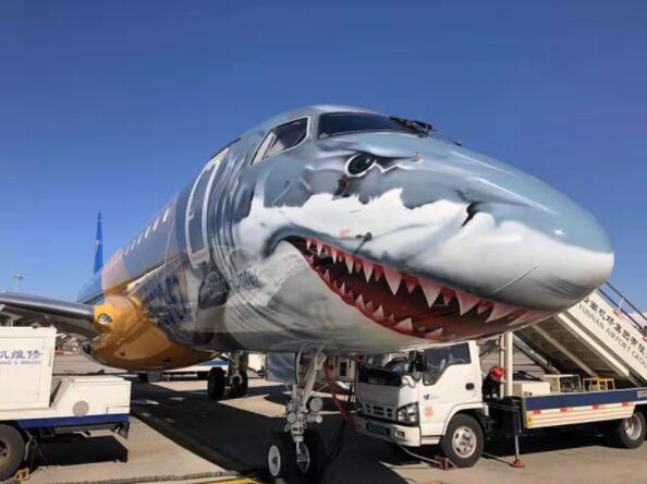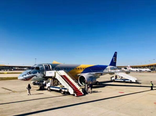 【香港商報網訊】11月13日,一架噴繪有大鯊魚塗裝的巴航工業E190-E2型飛機平穩降落雲南昆明長水國際機場,標誌著該機型全球巡演昆明站正式開啟。