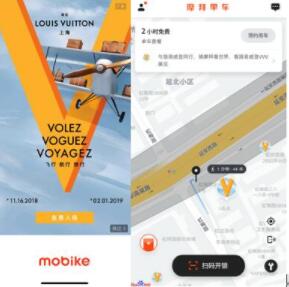 据介绍,双方此次达成合作,首先是基于品牌调性和品牌价值主张上的的高度契合:路易威登成立于1854年,拥有164年的辉煌的历史,一直倡导“旅行的艺术”;摩拜作为一个新生品牌,始终倡导“探索城市未知”,鼓励用户进行“城市微旅行”,二者在品牌价值主张上具有非常高的契合度。上海的摩拜用户在打开摩拜APP时,会收到来自路易威登展览的邀请,同时,摩拜单车APP界面中的车辆元素也更改为路易威登此次展览的主题视觉,向用户宣传展览信息。