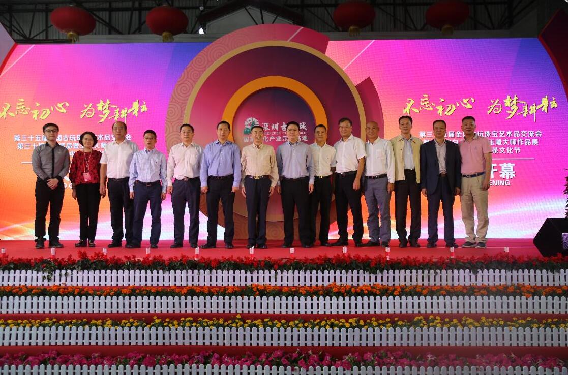 罗湖区人大常委会主任熊国伟宣布开幕,在现场热烈的掌声中,出席现场的各界领导嘉宾走上主席台启动活动。在大家的助力下,屏幕中象征文化的小树苗,在阳光和雨水的滋养中,逐渐长成参天大树,最后屏幕中显现出“不忘初心 为梦耕耘”八个大字,就此,第三十五届全国古玩珠宝艺术品交流会盛大开幕。