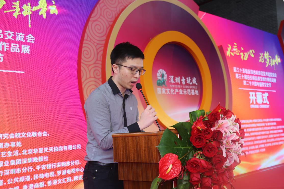【香港商报网讯】记者苏伟报道:11月15日下午,第三十五届全国古玩珠宝艺术品交流会开幕仪式在深圳古玩城隆重举行,出席本次开幕仪式的领导嘉宾主要有罗湖区人大常委会主任熊国伟、罗湖区人民政府副区长左金平以及艺术界、收藏界、中华炎黄文化研究会砚文化委员会、中华文化促进会古玩城联盟、古玩行业协会、媒体朋友及海内外嘉宾共计300余人出席了开幕式,来自全国各地的800余家参展商参展。
