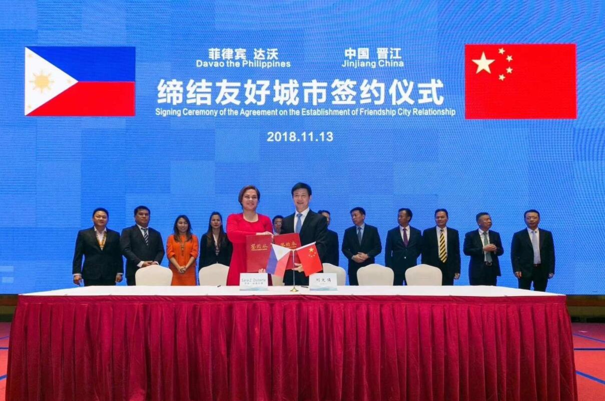 期間,達沃市與晉江市簽署友好城市關係協議書。薩拉·杜特爾特表示,達沃市與晉江市締結友好城市意義重大,菲律賓很多華僑華人祖籍地來自晉江,此次簽約將進一步拉近兩地人民之間的情感,助力中菲友好往來。