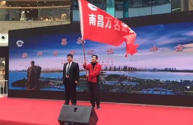 撫州市委常委、宣傳部長傅云為合作旅行社授“萬人游撫州”旗幟