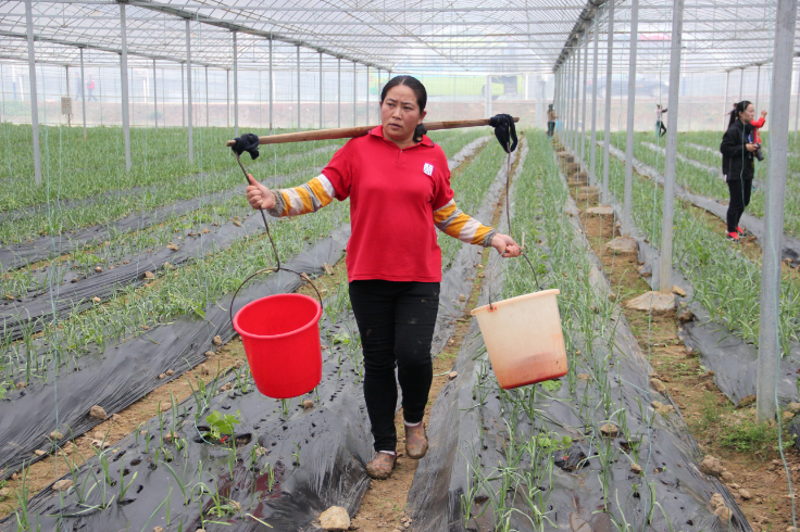“土地流转出来种蔬菜比以前自己种脐橙划算,以前脐橙很多都得了黄龙病,严重影响收益。现在我家除了一年1000多的土地流转费外,还在基地上打工,老公在家里养猪,还有合作社分红的收入,一年几万块是很轻松的。”正在大棚里干活的贫困户严红娣满意地说。