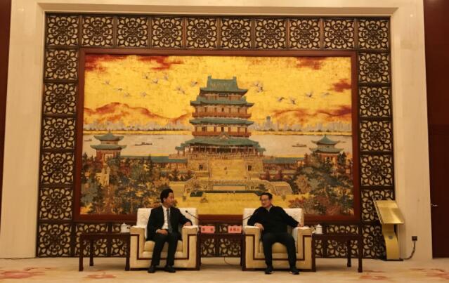易煉紅(右)與陳智交談,對銅鑼灣集團在江西擴大投資、加快發展的戰略表示歡迎。