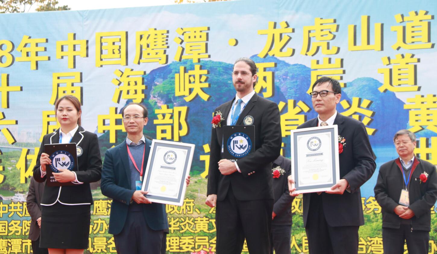 值得一提的是,由龍虎山景區與江西省毛體書法協會共同舉辦千人現場書寫老子《道德經》毛體書法創作和申報世界紀錄活動,今日在開幕式現場頒發證書。
