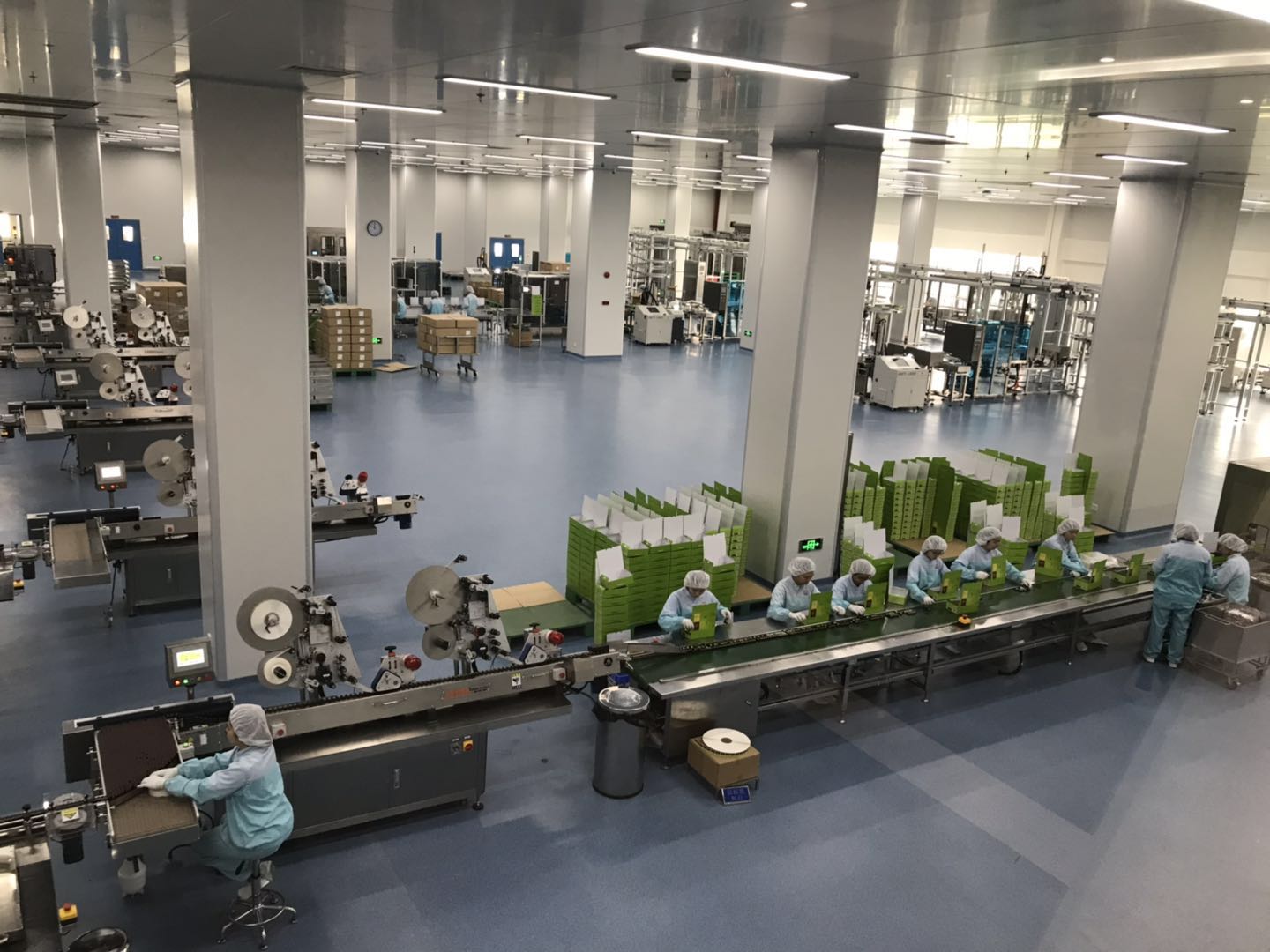 产品的配制环节在GMP十万级的洁净车间进行,洁净车间相当于外科手术室标准。员工每次进入车间必须进行二次更衣,穿专用洁净布鞋、洁净服、戴口罩、网帽,需洗手消毒,进入风淋室停留10秒去除身上灰尘。禁止直接用手接触物料,须穿戴一次性手套,并且每次出入一次洁净车间都要更换手套。