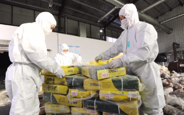 這次銷毀的凍品牛肉主要包括從我國禁止進口牛肉的印度等國家走私進境的牛肉牛腱、牛雜牛副產品,整體銷毀過程全部在海關嚴格嚴密監管下開展,海關從冷庫裝車、運輸、卸貨環節均執行雙人作業,運輸密封車施加關鎖、加貼封條,確保從出庫裝車、運輸到卸貨等各環節無縫對接。凍品到場后進入指定作業區進行無害化處理,全程使用視頻進行監控和錄像,海關工作人員及地方牧業監管部門對銷毀過程進行全程監督,確保上述涉案走私凍品全部銷毀。
