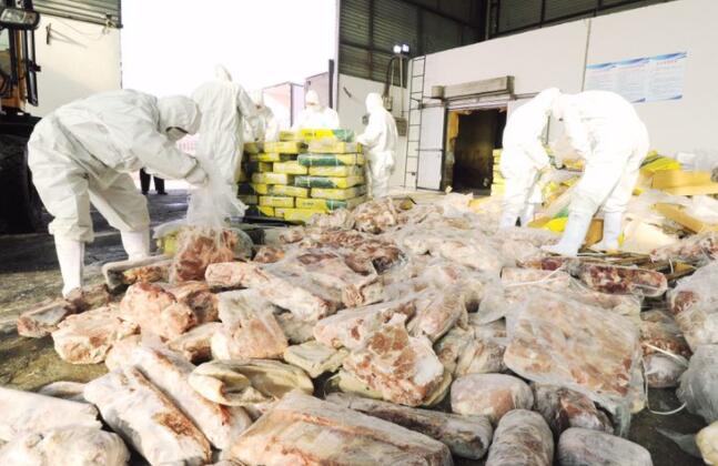 近年來,廣大群眾對進口肉類食品安全越來越關注,鄭州海關聚焦“中央關注、社會關切、群眾關心”的凍品肉類走私問題,始終保持打擊凍品走私的高壓態勢,在海關總署統一部署下,精心組織開展打擊走私“國門利劍”聯合專項行動,始終將境外凍品肉類走私作為打擊的重中之重。2015年以來,該關已連續偵辦走私凍品犯罪案件7起,查扣涉嫌走私凍品近800噸,查證涉嫌走私凍品2.7萬噸,貨值近9億元,打掉了一批凍品走私犯罪團伙,河南檢法機關已對3起鄭州海關移送的凍品走私案件提起公訴并做出有罪判決,有力地維護了全省凍品市場秩序和人民群眾餐桌安全。