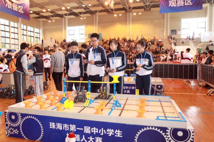 据了解,本次大赛由珠海市教育局主办,珠海市教育团工委和横琴新区维思港机器人科技有限公司承办。本次比赛有团队、个人、手动和自动等综合技能项目基本涵括了机器人人机交换的基础内容。非常考验选手的创意和团队协作能力,特别初高中组项目里的自动环节要编程让机器人自动完成系列动作得分,涉及了编程、声波、光敏、碰撞传感器、电机转速、差速计算、机器结构设计等,对设计者的综合能力也是一次挑战。