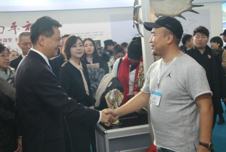 【香港商報網訊】11月24日上午,首屆東北亞文化藝術博覽會在哈爾濱國際會展中心啟幕,開幕式後,哈爾濱市委常委、宣傳部部長焦遠超,深圳市文化體制改革和發展辦公室主任劉文斌等領導巡視展館。焦遠超、劉文斌等參觀了文化產業綜合展區、數字文化展區、藝術精品展區等三大展區,並與參展人員進行交流,詢問區域特色文化發展、藝術創作、市場行銷等情況。