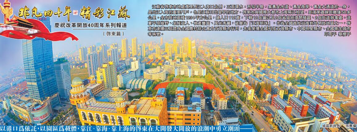 2018年是一個特殊的年份,改革開放邁入第40個年頭;在歷史的交匯點,回望來時路。四十載,風雲激盪,啟東用拼搏記錄了一個偉大的時代,用改革開放的累累碩果告訴世界,地處長三角江海交會點的啟東正以港口為依託,以園區為載體,全力構建起全方位聯通世界、全市域優化布局、全領域拓展深化的全面開放新格局,在時代的新起點,整裝再出發。