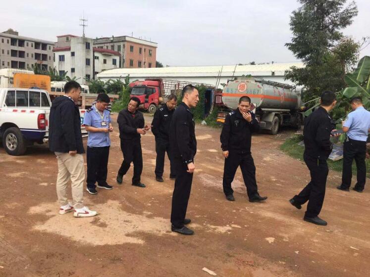 “就是这里,无人机再靠近些,这里停放着非法销售充装“黑油”的车辆、设备和疑似存储设施。” 网格管理员告诉记者,巡查发现疑似黑油点后,为防止黑窝点被转移,工作人员将情况上报道滘网格管理中心。经过二次核查确认,道滘镇组织经科信局、安监分局、公安分局、网格管理中心以及道滘蔡白村等部门、单位、村约30多人组成联合执法组决定对这个黑窝点进行“收网”。联合执法组来到了蔡白第一工业区这个围蔽地块现场,展开打击整治统一行动。当场查扣作案车辆7辆,抓获嫌疑人4名,查获非法“黑油”约14.5吨,包括汽油约7.3吨、柴油7.2吨,市价约18万元。