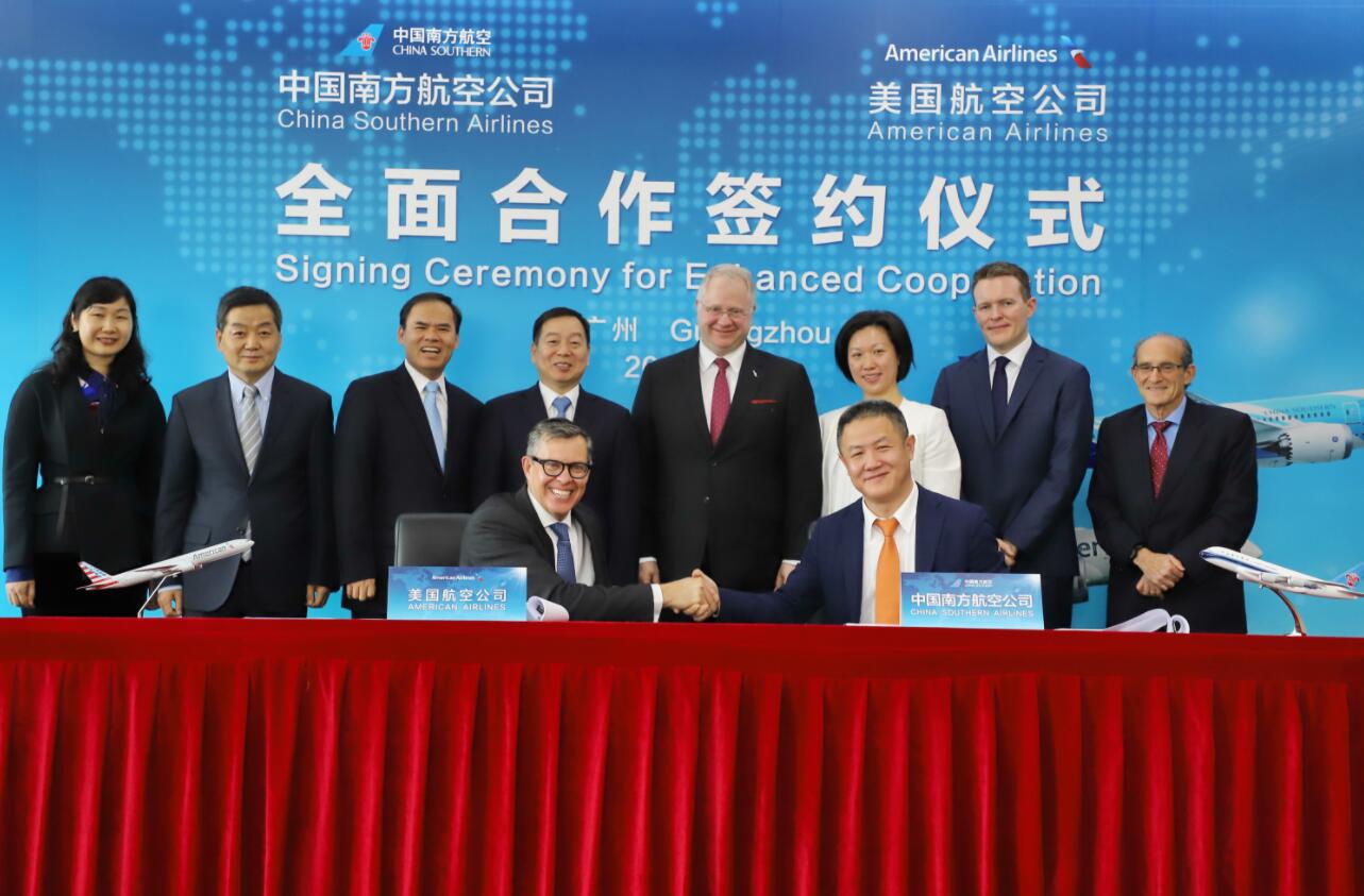 【香港商报网讯】记者林丽青报道:11月28日,中国南方航空公司与美国航空公司在广州签署了代码共享合作扩大协议、常旅客合作协议以及休息室合作谅解备忘录,双方将进一步加强商务和战略合作,为旅客提供更加便捷和优质的出行体验。