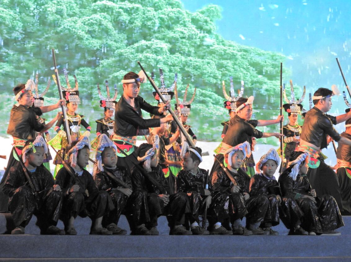 從江縣慶祝改革開放40周年暨浙江湘旅·貴州從江第十五屆原生態侗族大歌節文藝晚會在一曲悠揚悅耳盪氣迴腸的《歌唱新時代》侗族大歌聲中拉開序幕,器樂表演唱《侗族姑娘愛唱歌》、苗族舞蹈《月亮山那邊》、苗族舞蹈《遠古岜沙》、歌伴舞《最美梯田雲上來》、歌曲《遇見占裡》、情景表演《長桌宴》等獨具民族文化元素特色的節目逐一上演,向來自四面八方的賓客獻上了一桌豐盛的民族文化盛宴。