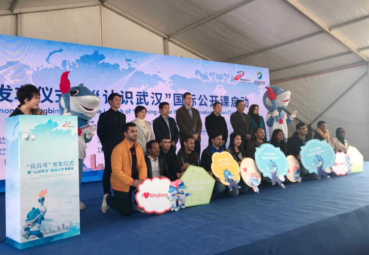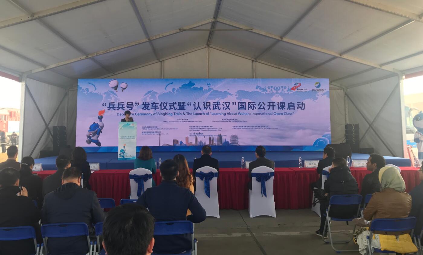 “兵兵號”發車儀式上,武漢首場“認識武漢”國際公開課也舉行了開課儀式。當天,30餘名來自“一帶一路”沿線國家的在漢留學生和在漢工作、生活的外籍人士還參觀了吳家山鐵路集裝箱中心站作業區、臨空港綜合保稅區、漢歐國際“一帶一路”商品展示直營店等地,並學習了茶藝、製作漢繡等特色課程,親身領略了中華傳統文化的魅力,感受到了武漢和臨空港主動對接“一帶一路”倡議的作為。不少外籍友人在國外社交平臺現場直播所見所聞,把軍運邀請傳回各自國家。