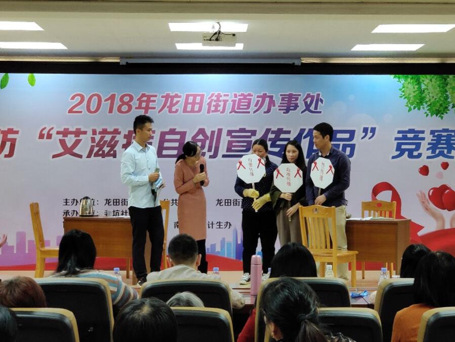 活动通过自创防艾小品、舞蹈的演绎,以及知识问答、游戏互动等方式,有效地向辖区居民群众宣传艾滋病防治知识和政策,提高了辖区居民对预防艾滋病的认识,掌握科学的"防艾"知识。竹坑社区、公共服务办、南布社区分别荣获竞赛一、二、三名,老坑社区、龙田社区分获优秀奖。