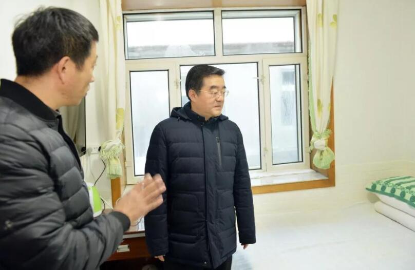 張慶偉來到雪鄉第一家——劉明文家庭旅館,察看房間、衛生間、餐廳,詳細了解接待能力、游客入住和餐飲價格等情況。徐旭 攝