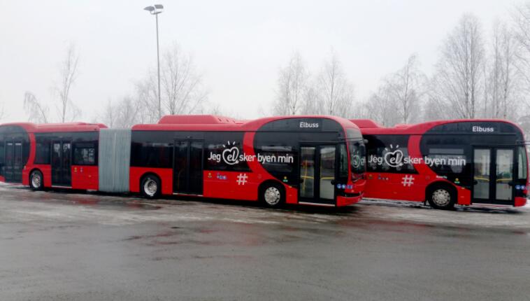 在挪威运营的比亚迪纯电动铰接巴士