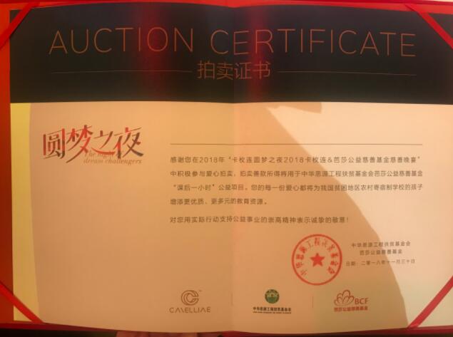 此次愛心盛宴以“圓夢”為主題,從助力公益慈善出發,倡導家國情懷,和諧共生的理念,匯聚文化、藝術、時尚、教育等眾多行業精英,一同奏響中國、企業、家庭、世界四重“圓夢”旋律。鐘麗緹、陳紫函、黃舒駿、王子騰等明星等親臨現場,以慈善競拍、愛心捐贈等方式為幫助農村寄宿制學生的“卡枚連助童圓夢”公益項目募集善款。