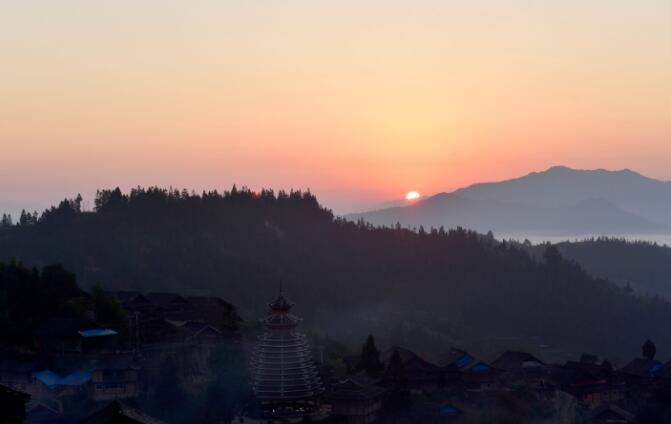 貴州省從江縣高增鄉美德侗寨晨曦景象。 吳德軍 攝