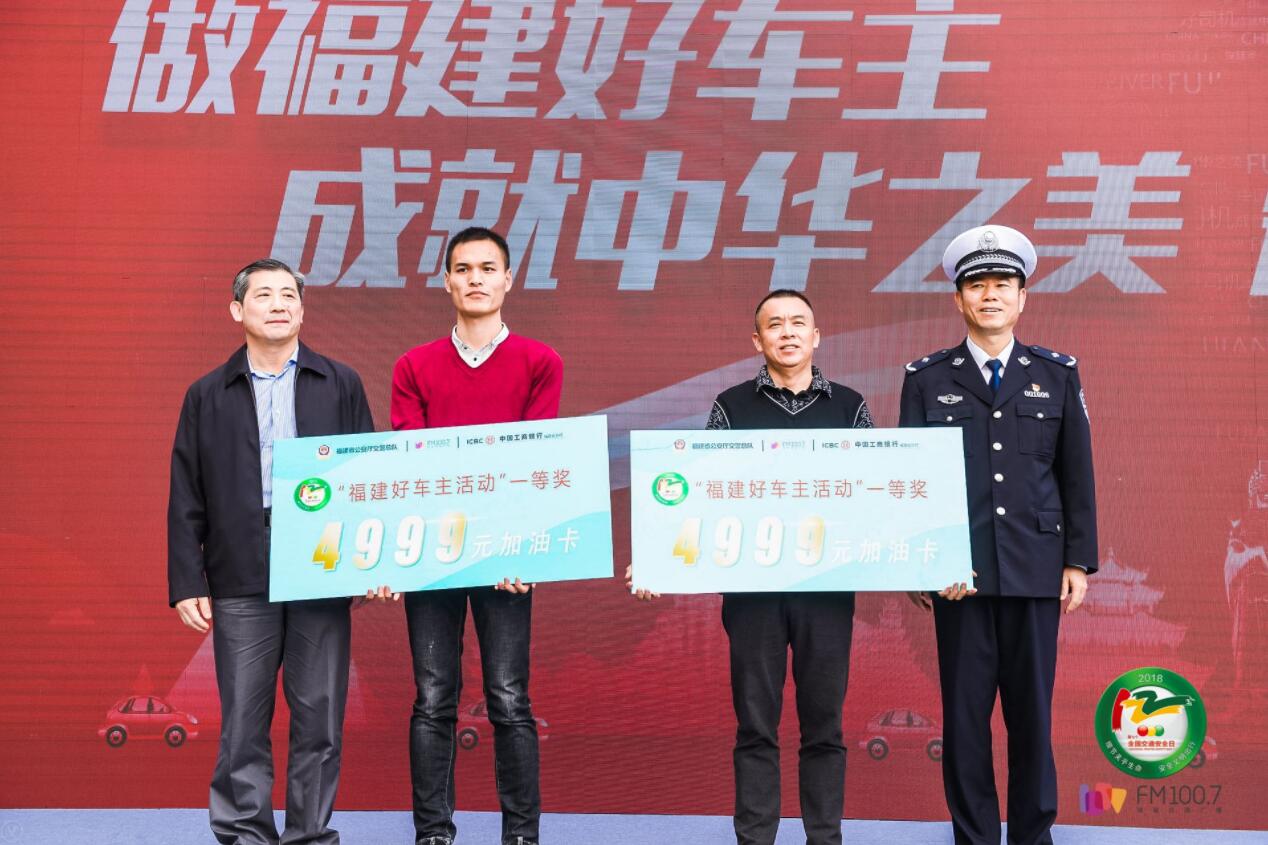 為了倡導文明安全行車,今年10月,中國工商銀行福建省分行與省公安廳交警總隊、FM100.7福建交通(應急)廣播,共同舉辦“做福建好車主,成就中華之美”大型公益評選活動。活動當天將揭曉好車主1名特等獎,獲得東南汽車1年使用權,以及2名一等獎,各獲得一張4999元油卡。活動現場還將進行人保財險福建分公司為中小學校贈送交通安全宣教魔法箱儀式,組織郵政和美團電動自行車騎手代表進行安全宣誓,並進行騎行宣傳。