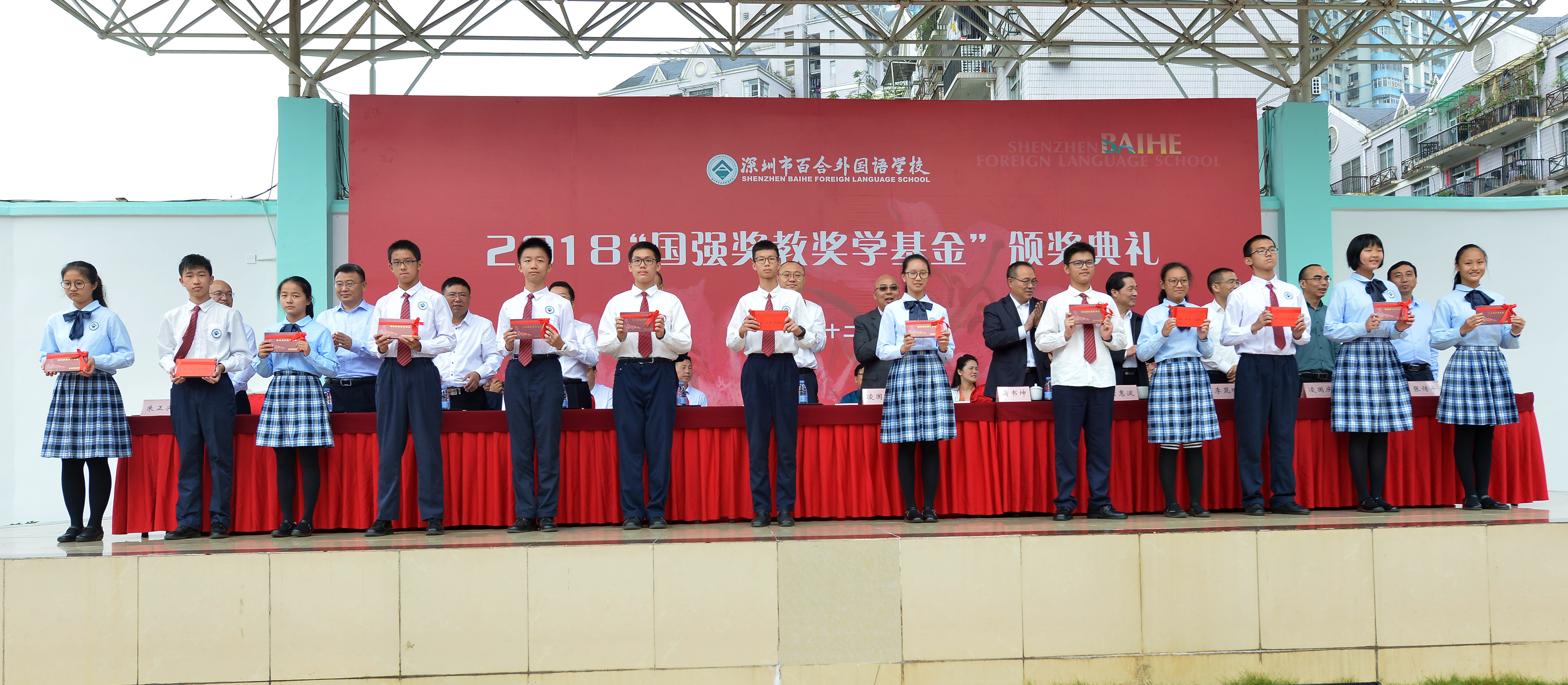 本屆深圳市百合外國語學校的“國強獎教獎學基金”中,141名教職員工和217名學生獲獎,獎金總額為3,796,800元,還有有5位教師獲得百外十年教齡紀念金牌;據介紹,從2003年至今, “國強獎教獎學金” 共頒發十六屆,累計發放近1500萬元,獲獎師生累計達3600余人次。78位教師榮獲紀念金牌。