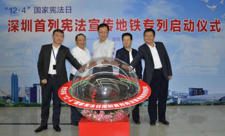 12月3日,深圳首列憲法宣傳專列在地鐵二號線開啟,車廂內處處可見展示憲法精神、憲法發展歷程和小知識的標語、公益海報、宣傳漫畫。市民感嘆在出行中就能學到憲法知識,這樣的法治宣傳方式很新穎。