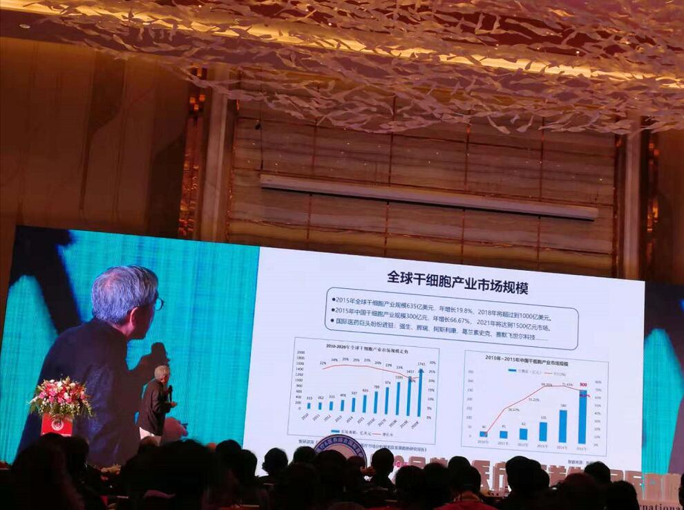 本届论坛获得了来自中国、美国、英国、澳大利亚、日本等国家的专家学者踊跃参与,中国科学院院士苏国辉教授详细介绍了全球干细胞产业政策、市场规模,他介绍说,2015年全球干细胞产业规模635亿美元,年增长率9.8%,2018年超过到1000亿美元;2015年中国干细胞产业规模300亿美元,年增长率66.67%,2021年将达到1500亿美元。