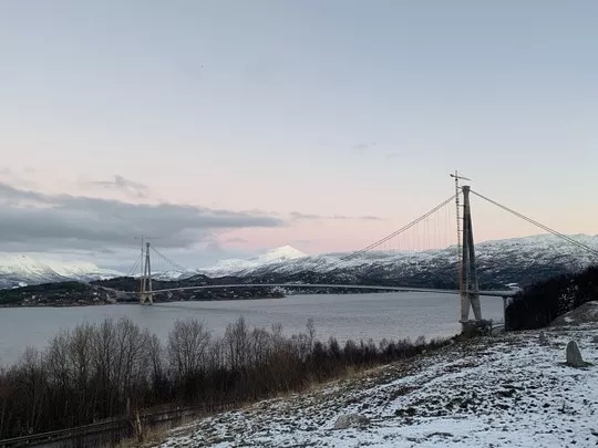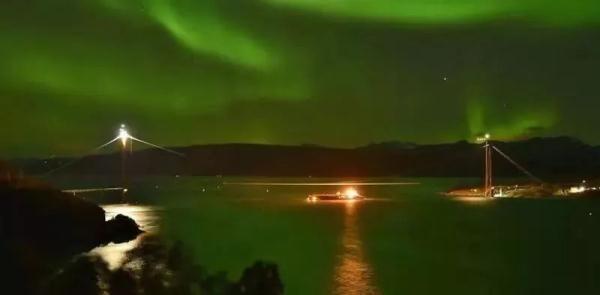 哈羅格蘭德大橋位於挪威北方港口城市納爾維克市,跨越北部奧福特峽灣,在北極圈以北200公里,被稱為“與極光相伴的橋”。大橋長1533米,其中主跨1145米,為歐洲第五大懸索橋。大橋通車后,連接挪威和瑞典西海岸的歐洲E6公路有了重要捷徑,挪威也新添地標名片。