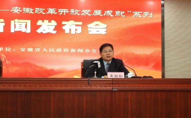 安徽省統計局局長吳勁松此間對外通報改革開放40年安徽經濟社會發展成就 許越 攝