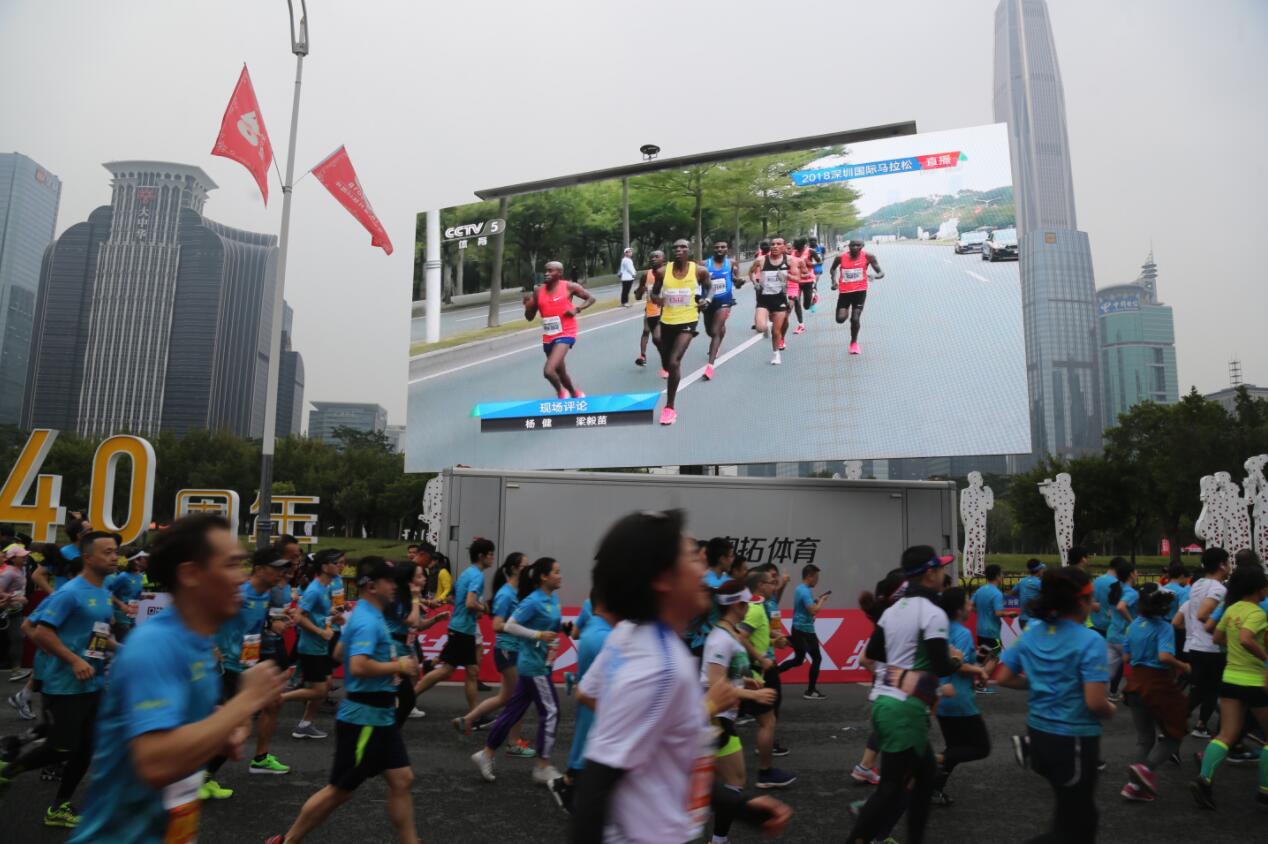 【香港商报网讯】记者 苏伟 报道:12月16日早上8点,2018深圳国际马拉松在市民中心恢弘起跑,深圳市委常委、宣传部部长李小甘、深圳市人民政府副市长吴以环、市政府副秘书长刘佳晨、中国田协社会活动部副主任高山、市文体旅游局局长张合运以及福田区、南山区、罗湖区的有关领导共同鸣枪,3万名来自37个国家和地区的跑者用奔跑的方式向中国改革开放40周年致敬。经过两个多小时激烈的角逐,男子马拉松冠军由肯尼亚选手EDWIN KIPNGETICH KOECH以2小时9分44秒成功夺得,并打破赛会记录;女子马拉松冠军由埃塞俄比亚选手MULU SEBOKA SEYFU以2小时27分12秒成功夺得,也打破了赛会记录。中国籍选手张振龙以2小时20分35秒获得国内男子第一;张景霞以2小时56分12秒获得国内女子第一。