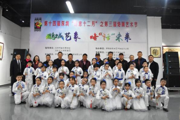 【香港商报网讯】记者 苏伟 报道:深圳市文化创意品牌“创意十二月”系列活动——第三届烙画艺术节于12月14日在深圳市光明区光明烙画基地精彩开幕。广东省人民政府参事、原深圳市政协副主席周长瑚;原深圳市纪委副书记、原市监察局局长张伟雄;原深圳市公安局副局长李斌;深圳市人大常委会教科文卫工委副巡视员陈红星;光明区区委常委刘大岭;光明区政府副区长张宗平;光明区政协副主席、文体教育局局长郭峰;深圳市纪委原副秘书长、深圳市清风书画研究院执行院长 陈晓春;原深圳市科工贸信委纪委书记、深圳市清风书画研究院执行院长吴文法;原深圳市监察局机关党委书记、深圳市清风书画研究院副院长王湘南;原深圳市人大教科文卫工委主任、深圳市清风书画研究院副院长林源昌;原光明新区综合办调研员李百军;深圳市烙画艺术协会会长张守福;兰江地产集团董事长、深圳阜阳商会会长刘海洋;同时我们还有幸邀请中国乐百年文化交流中心原解放军总政治部副主任周文元中将一行;还有光明区综合办、凤凰街道办事处的分管负责人、光明区公共文化艺术发展中心负责人及关心、关注烙画艺术事业发展的社会各界嘉宾朋友、艺术家、春蕾学校、凤凰小学、精华学校、媒体朋友等共约300人参加了开幕式。