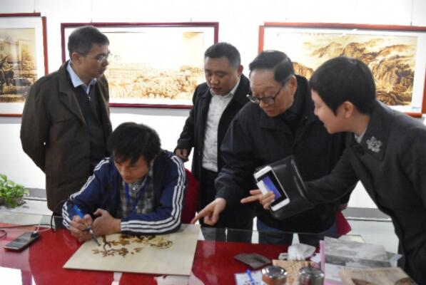 广东省人民政府参事、原深圳市政协副主席周长瑚表示:“烙画艺术节,顾名思义,主题是烙画。烙画,是国家的非物质文化遗产,是全民族宝贵的历史瑰宝。烙画本身不仅是民族历史的体现,更是民族精神的表达。烙画艺术,淳朴而唯美,古拙而独特,随着近年的发展受关注度越来越高。光明区烙画艺术的发展已经慢慢开始驶入快车道,希望各方能够加强合作,相互支持,不断扩大烙画艺术的影响力。”并在最后宣布“创意十二月”之第三届烙画艺术节开幕。深圳市文化创意品牌“创意十二月”系列活动——第三届烙画艺术节组委会负责人张守福陪同参会领导嘉宾欣赏烙画作品。