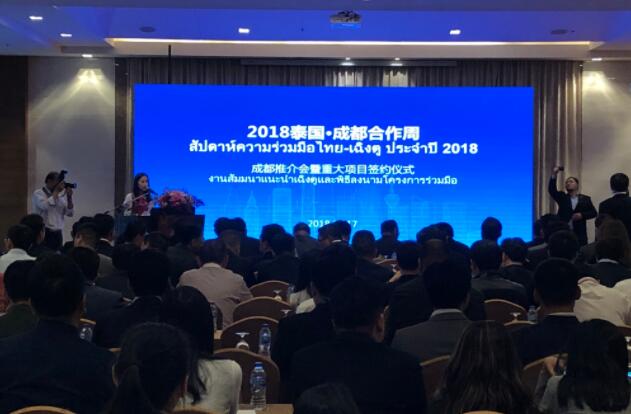 【香港商報網訊】記者 付莉莉 報導:12月17日,成都推介會暨重大項目簽約儀式在泰國曼谷飛馬酒店舉行。來自中國駐泰國大使館,泰國商貿部、泰中友協、曼谷市政府、泰國行業協會及兩地企業的200餘人出席活動。作為2018泰國·成都合作周重要子活動,此次活動旨在搭建合作交流平臺,推動成都優勢企業、名優商品、特色服務進入東南亞市場,全面搶抓“一帶一路”與“東部經濟走廊”對接機遇,深化兩地的優勢產業合作交流向縱深發展。