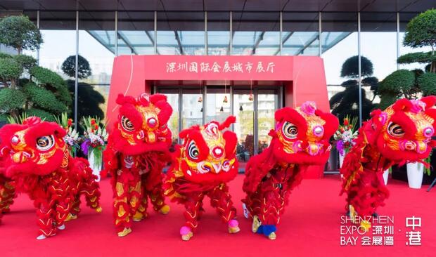 致辞结束后,醒狮献瑞,锣鼓声声,热闹非凡。雄狮点睛,这象征着为雄狮赋予生命,深圳会展湾项目给城市注入生长的磅礴力量。