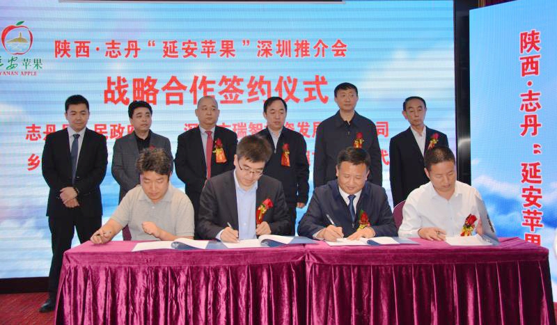 【香港商報網訊】記者 王曉蕾 報導:陜西·志丹“延安蘋果”推介會20日在深圳舉行。陜西志丹縣組織了各鎮辦(中心)13個果業專合作社、志丹縣工商聯赴深圳考察團以及志丹縣觀摩學習“雪亮工程”團成員及有關工作人員80余人前來推介。會上,志丹縣人民政府分別與深圳美宜多連鎖超市、深圳瑞智投資發展有限公司、鄉果網四方就建立蘋果專賣店、拓展建立志丹農特產品電子商務營銷平臺及以蘋果為主農特產品購銷等內容簽署了戰略合作協議。