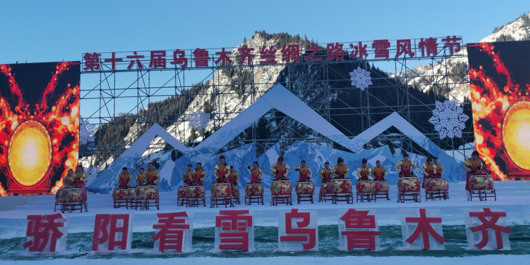 當日的啟動儀式上,一首龍鼓舞《中國龍》作為開場曲將氣氛帶動起來,舞蹈《冰雪姑娘》、健身舞《冰雪激情》、戲曲歌舞《詠梅》、歌舞《絲路彩虹》等歌舞節目隨後穿插其中。