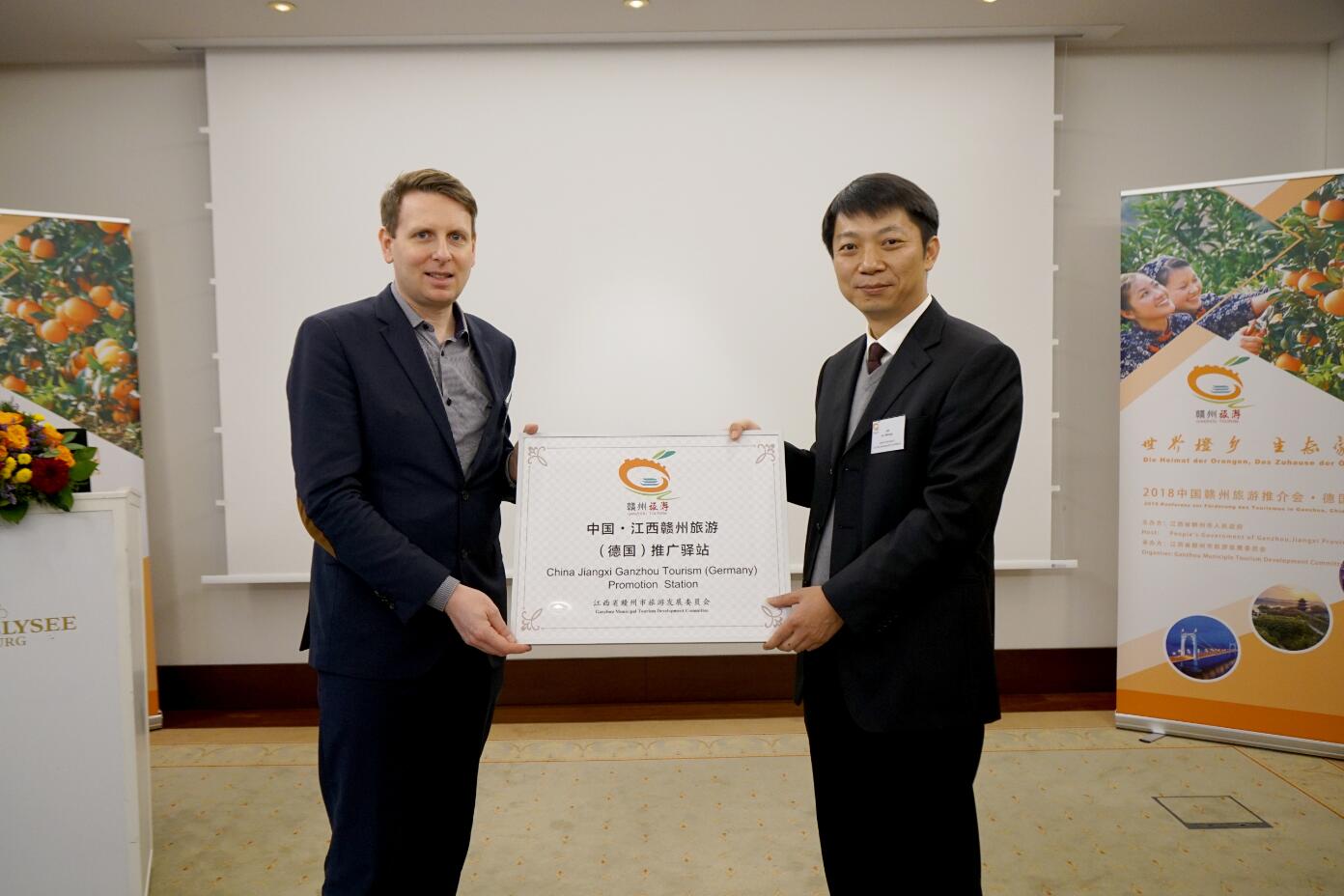 推介會上還舉辦了“贛州市旅遊推廣驛站”授牌儀式,贛州市旅遊發展委員會主任劉文彥向德國中國入境旅行服務商“中國之旅”授牌。雙方同意在共同開發贛州旅遊線路,更好的宣傳贛州旅遊等方面開展深入合作。