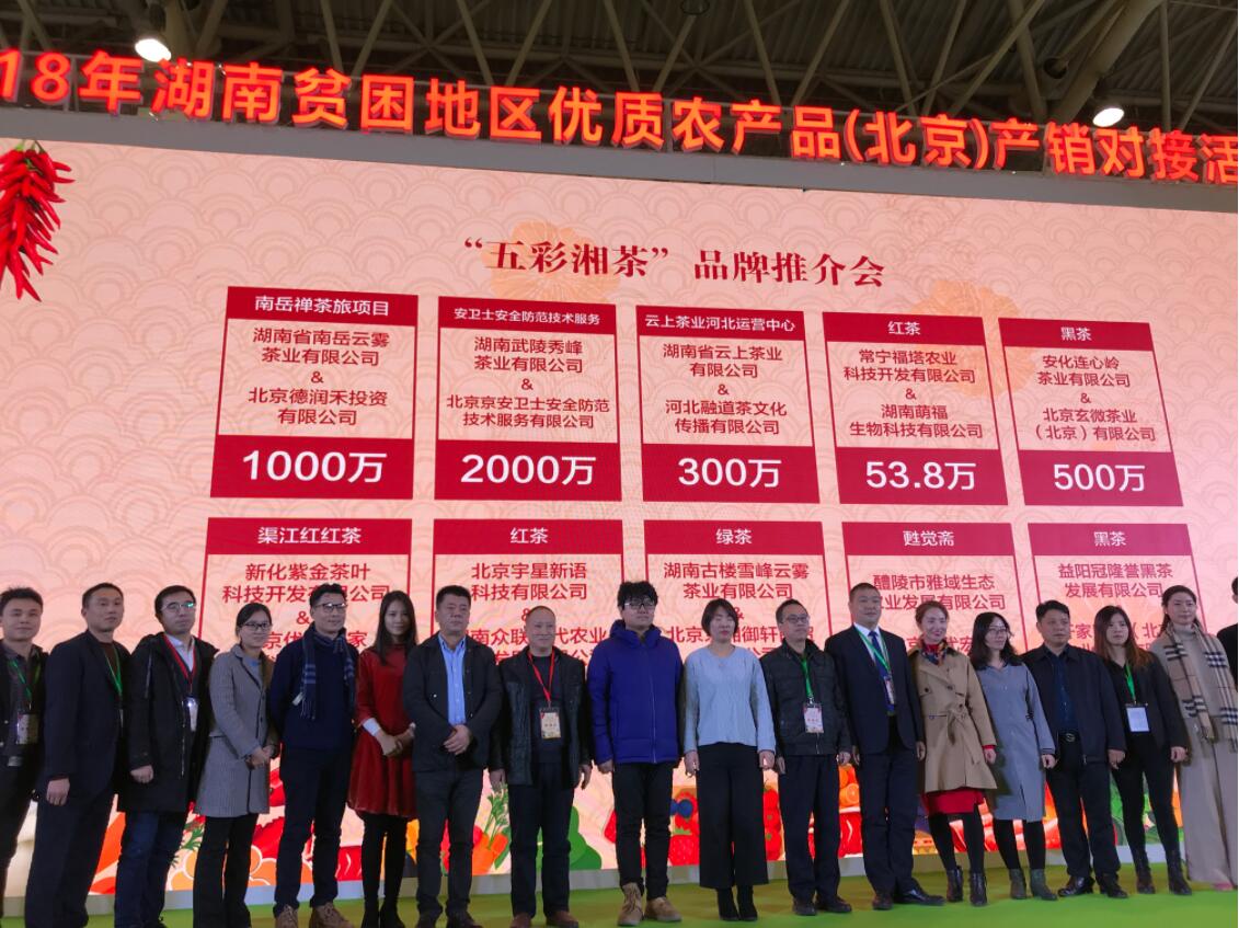 【香港商報網訊】記者 敖雷 報導:由湖南省人民政府主辦的“2018湖南貧困地區優質農產品(北京)產銷對接活動”21日下午在北京農展館分別舉行“五彩湘茶”品牌推介會及湖南茶油推介會。22家湖南茶葉企業在會上共簽訂了意向投資金額5億元,尤其是“安化黑茶”、“湖南紅茶”兩大品牌交易活躍。