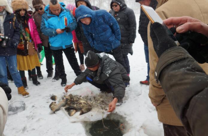 吉林市霧凇島冰面冬捕現場
