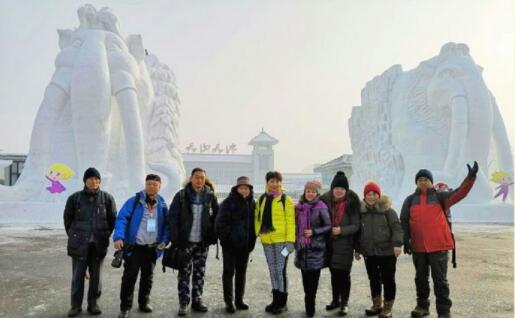 新疆冬季冰雪旅遊體驗團在吐魯番交河古城合影(黃萍攝)