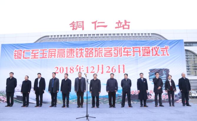 【香港商報網訊】記者 黃慶松 報導:12月26日上午8點,銅仁至玉屏高速鐵路旅客列車舉行開通儀式,至8點38分,首發列車G4621 從銅仁站駛出,迎來最為激動人心的時刻。