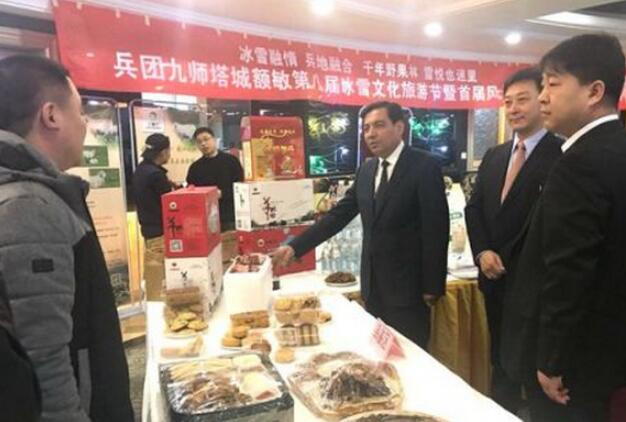 現場展示兵團九師與塔城額敏深入開展兵地融合后的經濟發展成效,合力推介即將舉辦的兵團九師與塔城額敏第八屆冰雪文化旅游節暨首屆風干美食節的各項具體活動,現場同時舉辦塔城地區風干肉產品地理標誌認證啟動儀式,并邀請來賓品嘗兵團九師、塔城額敏的風干美食及特產,誠邀八方賓朋共赴塔城額敏分享冰雪樂趣。